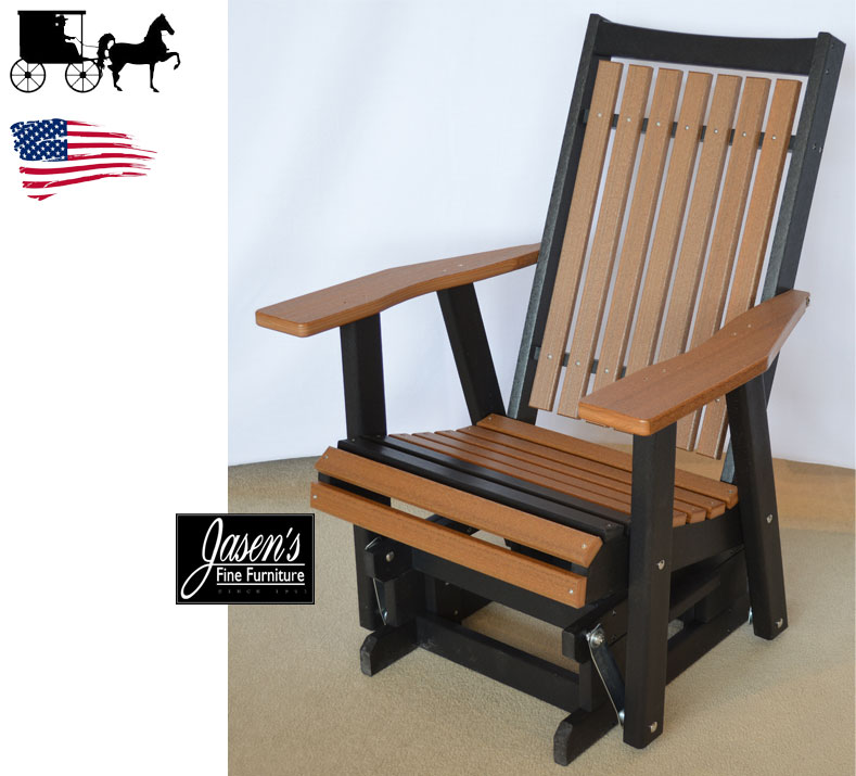 Amish 2′ outdoor glider features ample seat width, poly lumber construction with stainless steel reinforcement and mech to prevent rusting. Poly lumber is a low maintenance sustainable material that is made from recycled plastics and will not warp, crack, fade, or twist. Enjoy those summer sunsets while gliding with ease. Made in USA!